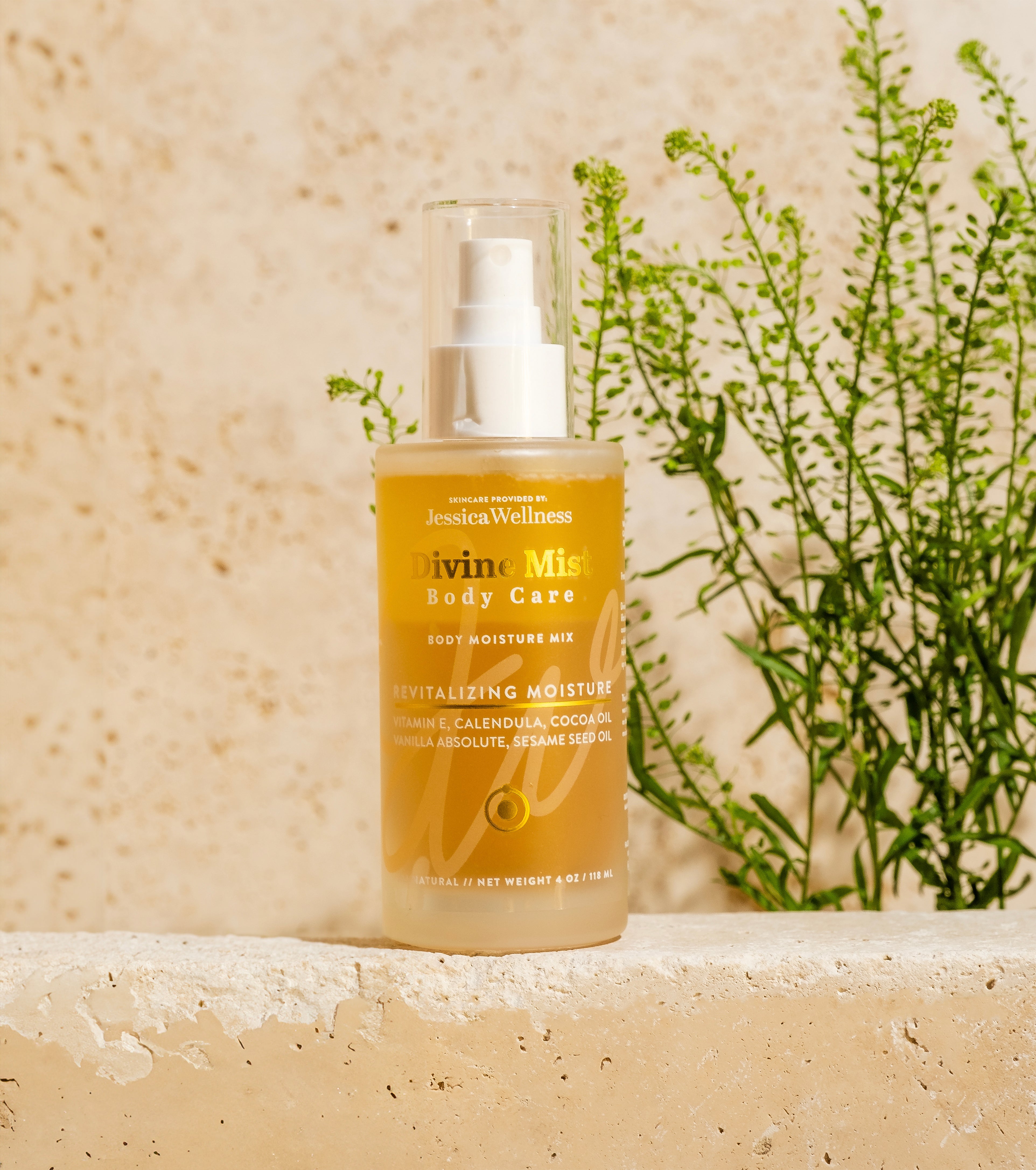 Shake vigorously until the two phases are unified; the result will be a milk-like substance. Spritz Divine Mist onto the skin as you would a perfume or body mist. Enjoy the delicate fragrance while experiencing a refreshing burst of hydration throughout the day.