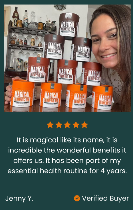 EXPERIENCE WELLNESS WITH MAGICAL TURMERIC TEA. POWERED BY THERAPEUTIC TURMERIC, THIS TEA DELIVERS NATURE'S GOODNESS IN EVERY CUP. ENJOY THE MAGIC OF HEALTH WITH EACH SIP!