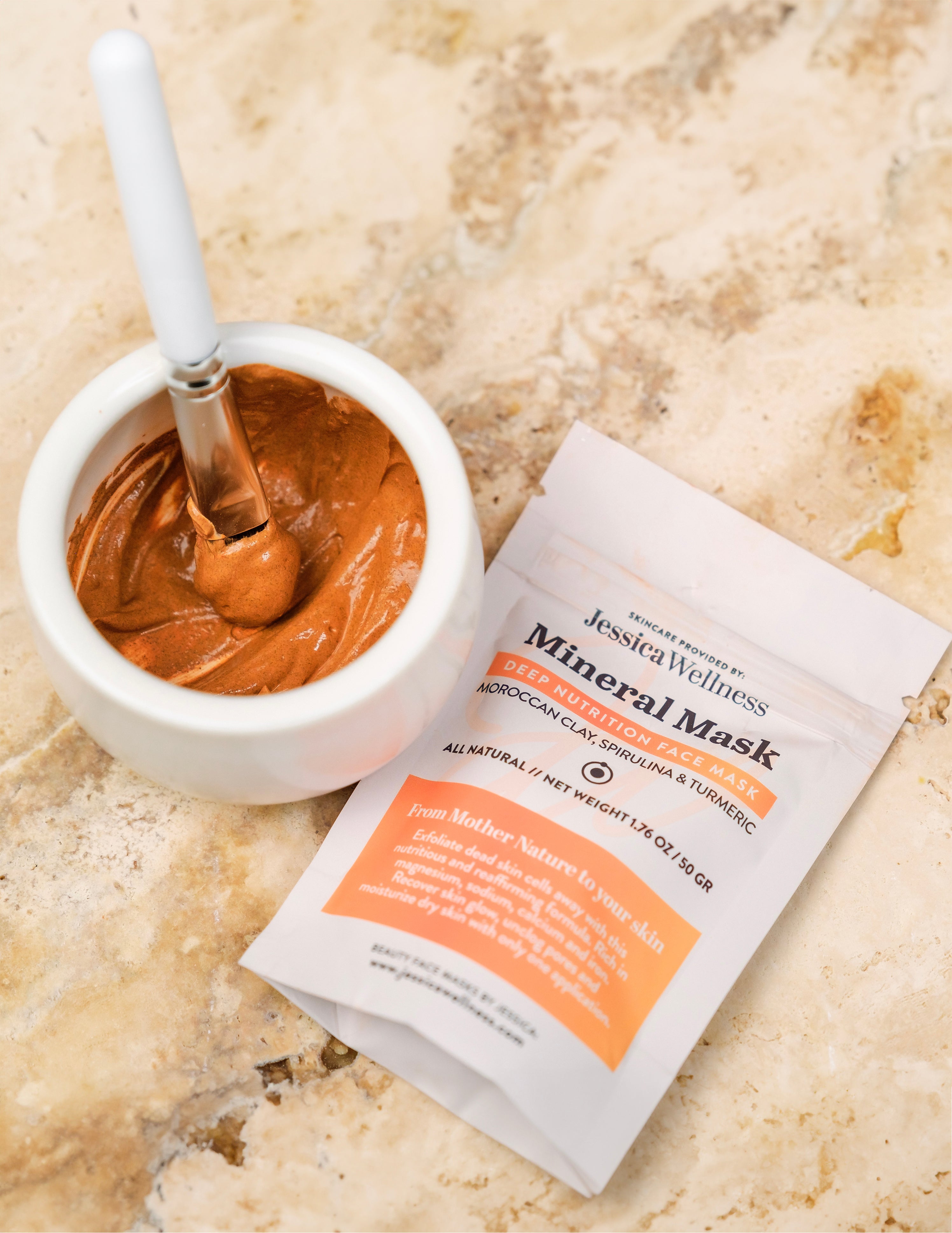 Our Mineral Facemask may be mixed with yogurt or other organic ingredients, such as an eggwhite , honey or any facial Toner by Jessica Wellness.
