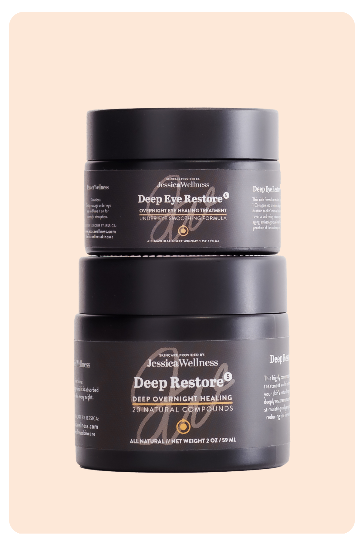 Transform your nighttime skincare routine with our Deep Beauty Pack, a two-piece set that includes two powerful balms: Deep Restore and Deep Eye Restore.